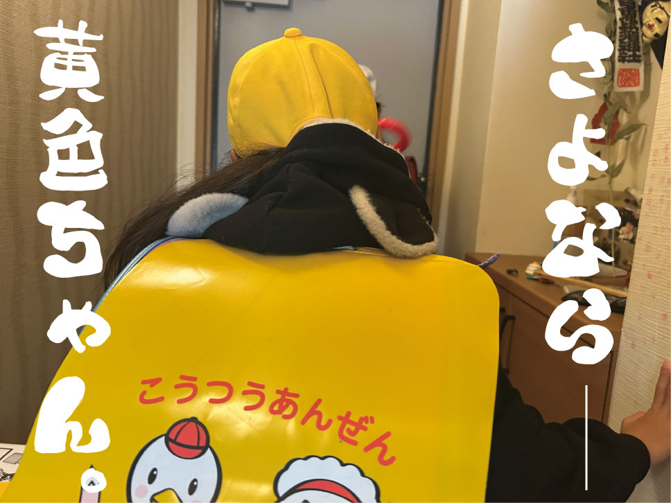 ピカピカの1年生のシンボルでもある黄色い帽子と黄色いランドセルカバーとも遂にお別れ。