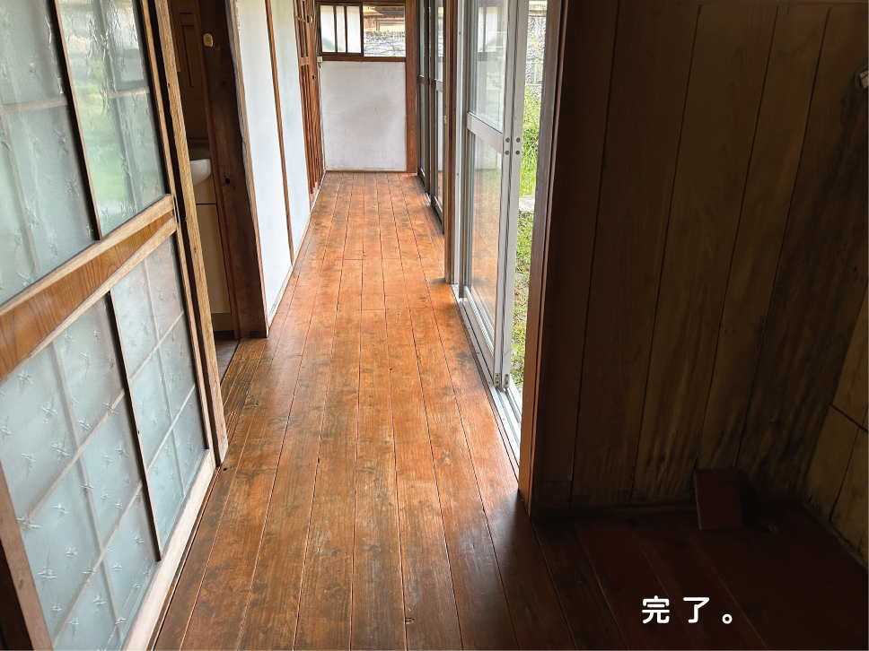 こういう作業はいつも勢いで始めるから作業前の写真を撮り忘れて変化を記録し忘れるけど、かなり廊下が生き返った。