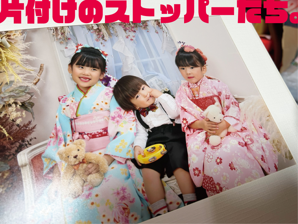 片付けをしている最中に出てくる今よりも幼い子どもたちの写真や